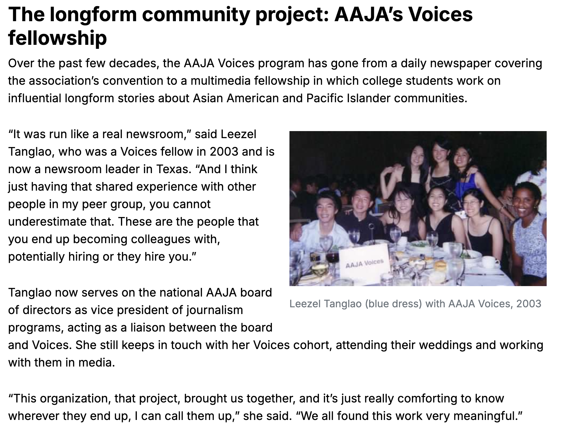 I was part of the AAJA VOICES student project during the AAJA 2003 convention held in San Diego. VOICES was purely a newspaper project. It has now evolved into a multimedia project.